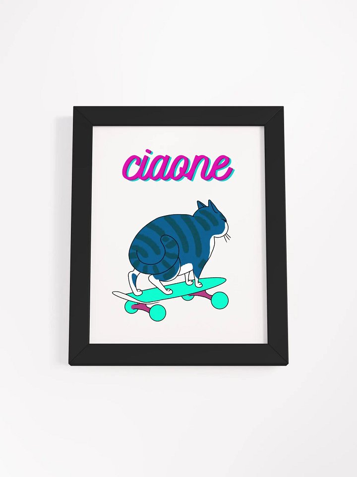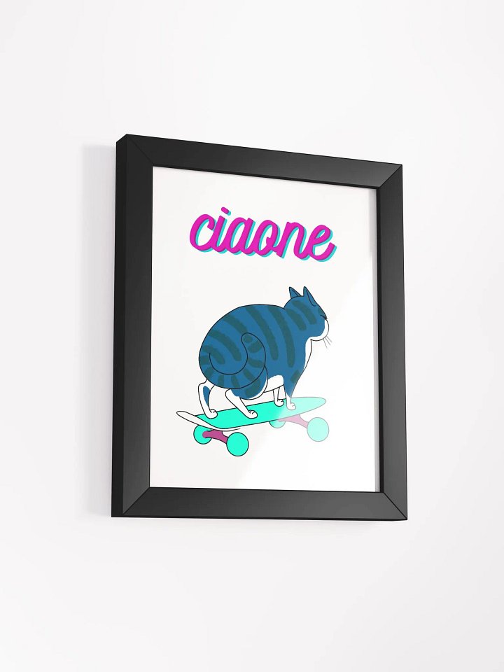 "Ciaone" Gatto Skater Poster con Cornice Bianca/Nera