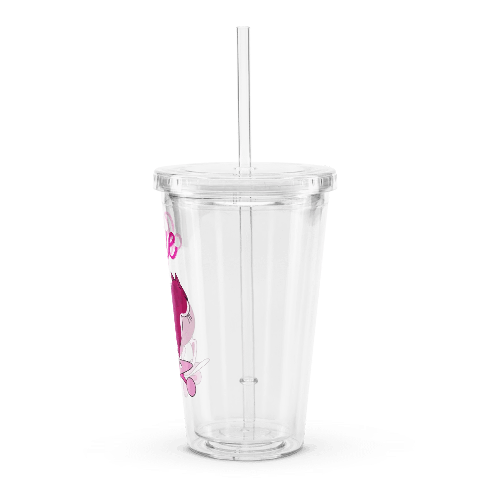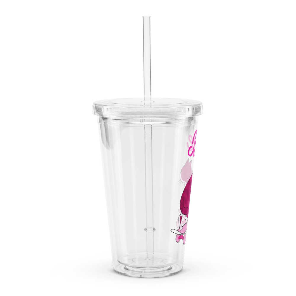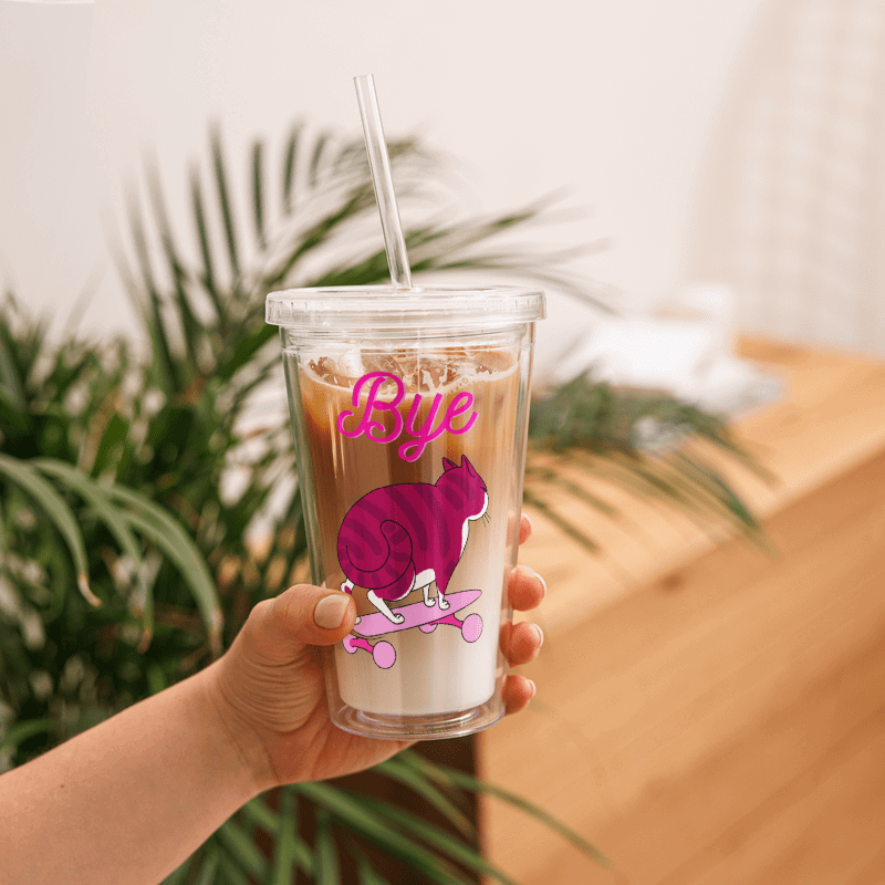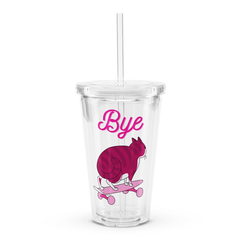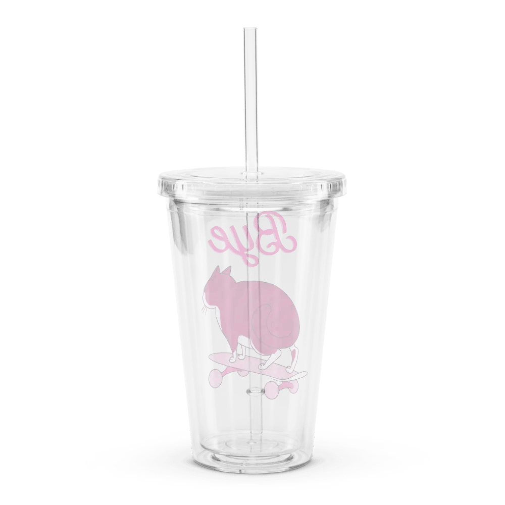 "Bye" Pink Skater Cat Clear Plastic Tumbler
