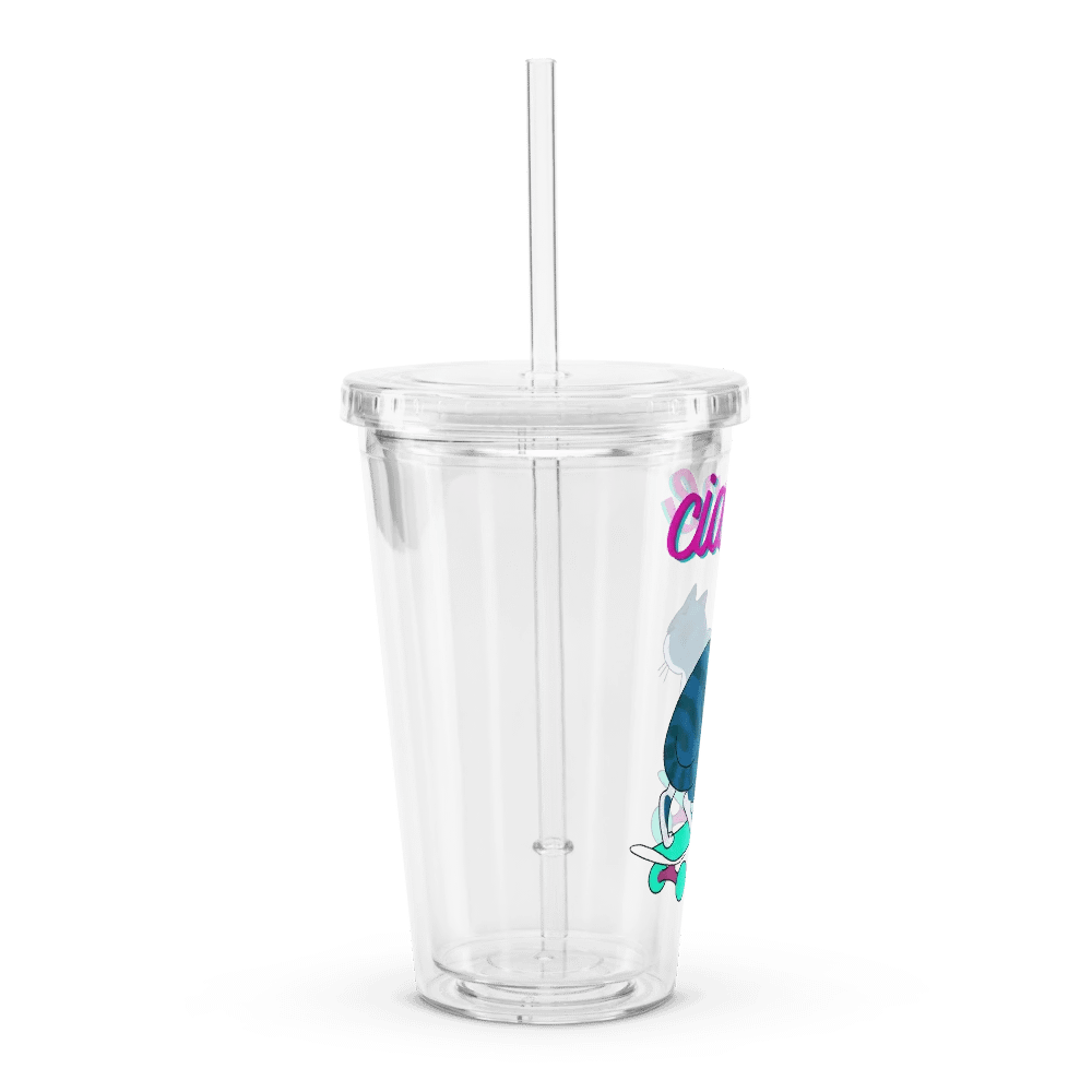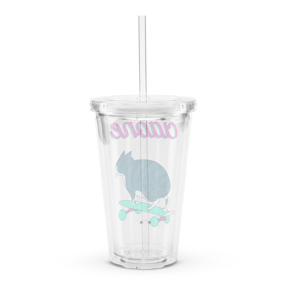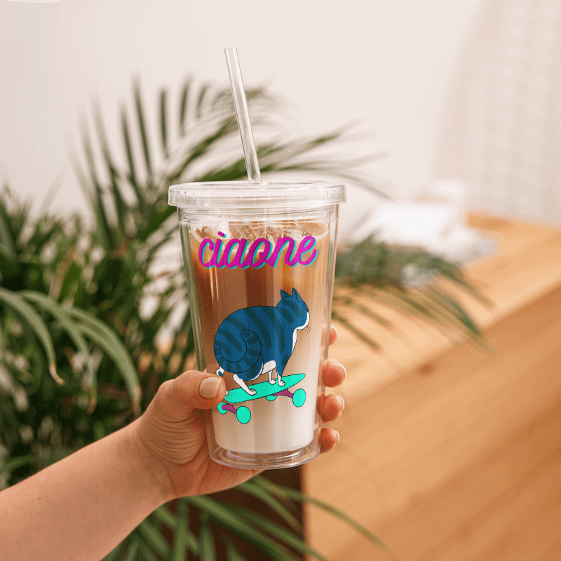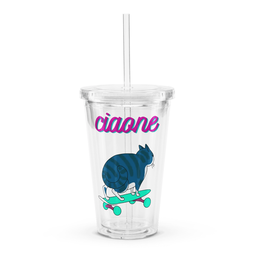 "Ciaone" Gatto Skater Bicchiere di Plastic Trasparente