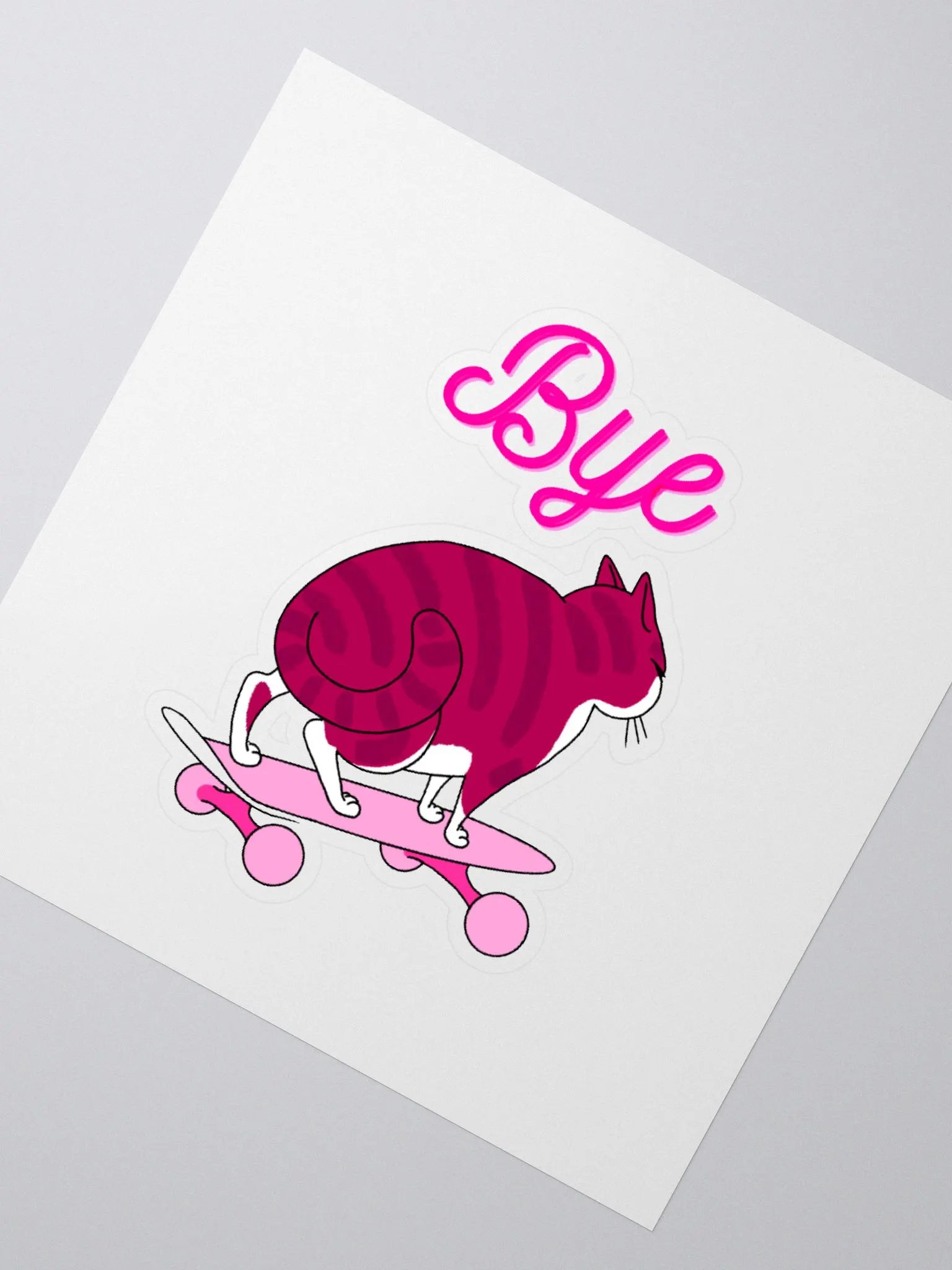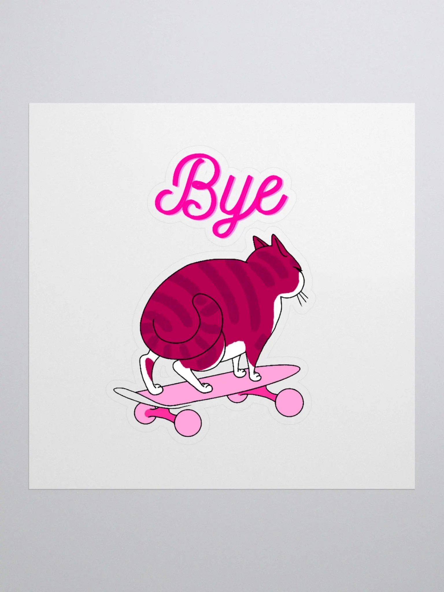 "Bye" Pink Skater Cat Sticker